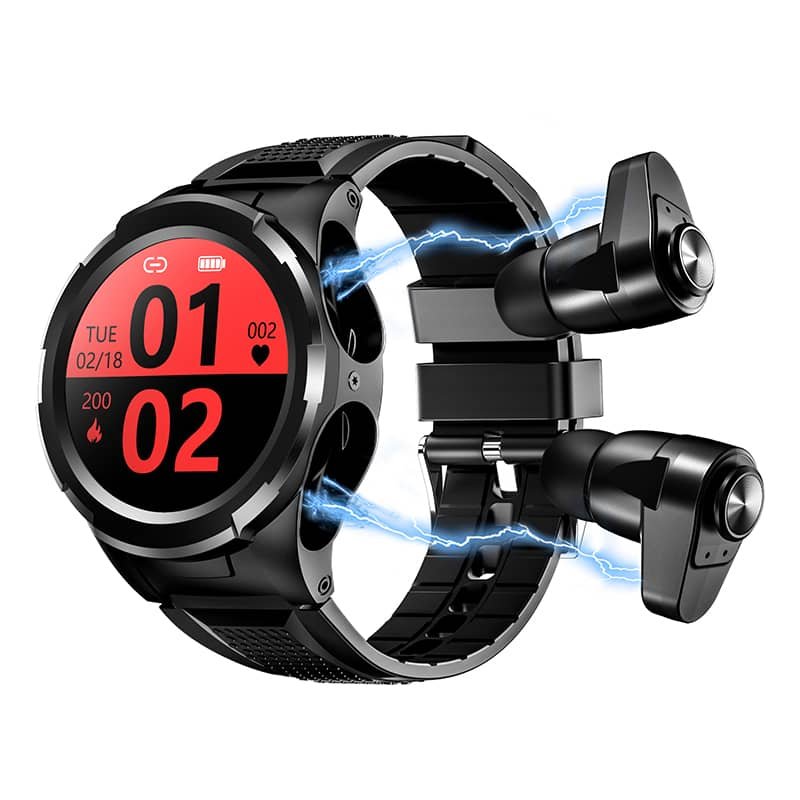 This innovative smart watch offers you 2-in-1 Brand-New experience of Smart Wearable Devices, which not only acts as a fitness tracker, but also a full-functional Bluetooth earphones. Wireless connection makes it’s your perfect choice for daily activity tracking and enjoy music. TWS Bluetooth Headphone Ingenious storage In the side of the watch.