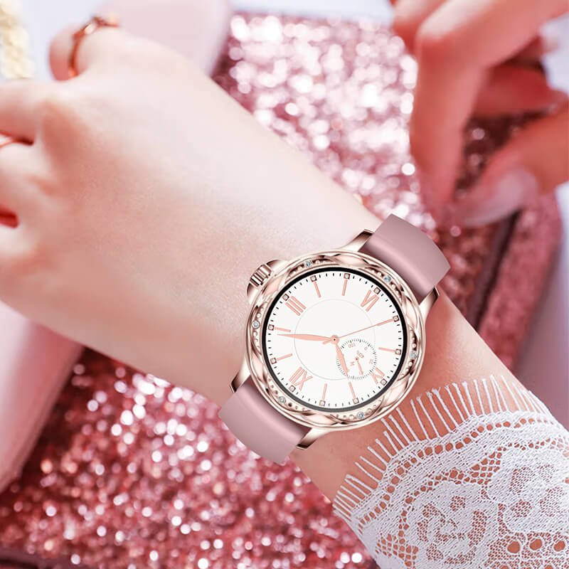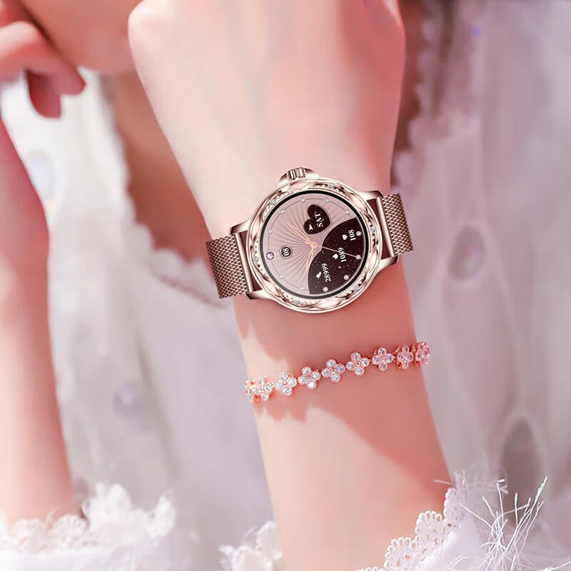 It adopts 1.2-inch high-definition full-color screen, which has clear display, rich details and brilliant colors, making all the content show wonderfully, quick operation, more convenient to view data, and the efficiency of lifting the bowl is obviously improved. The bezel is set with diamonds, like the moon is like a flower, like a petal, and you can feel the elegant beauty of the bright moon. The smart watch app is equipped with so many online watch faces of different styles, as well as DIY custom watch faces. You can set your favorite photos or pictures as watch faces.