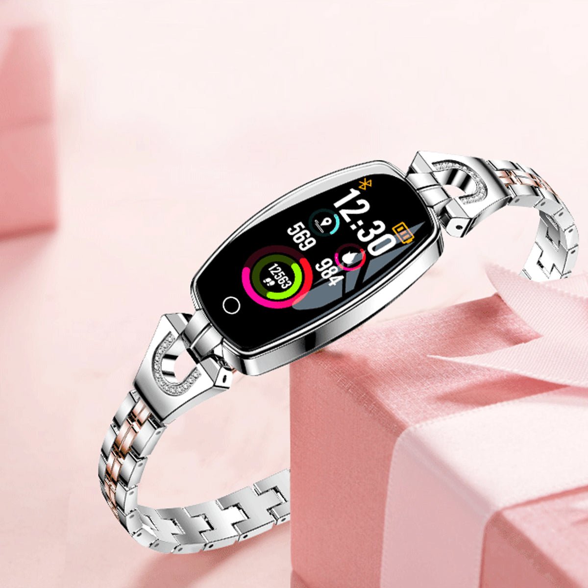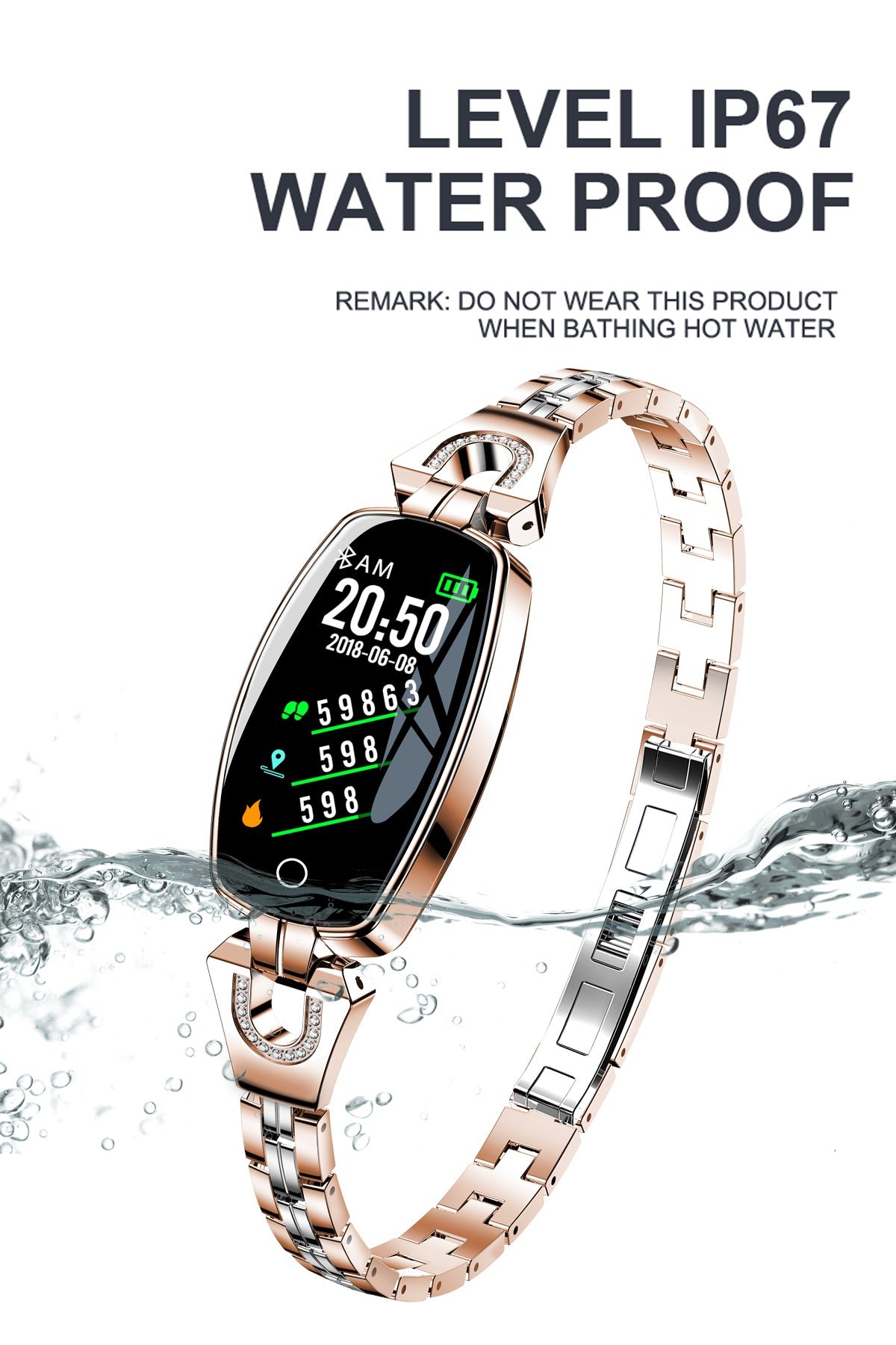 Luxury Stainless Steel Smart Watch for Women, add crystal on the strap, very charming for all occasions