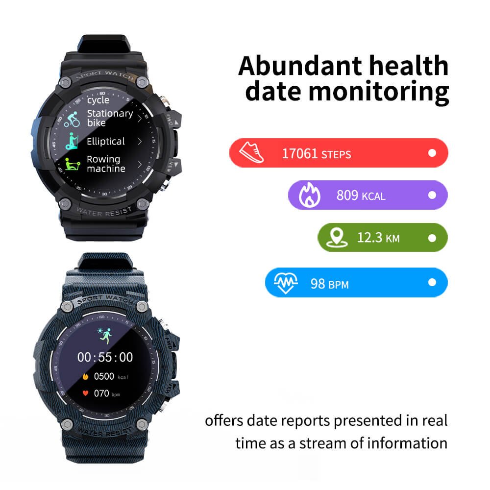 The Findtime smart watch can be measure on your watch, and sync it to the mobile phone APP and pay attention to the physical state at any time. This watch for blood pressure and heart rate monitor that record your every health condition with one button operation will protect your physical health all day long. The data is just used for reference actually. (This fitness tracker is not a medical device, the measurement data and results are for reference only, not for diagnosis and treatment basis.)