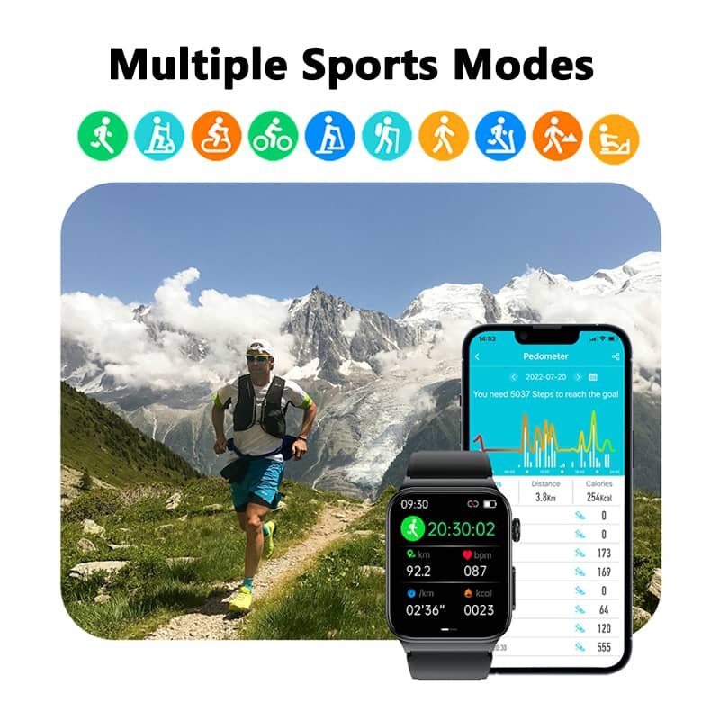The fitness watch supports various professional sports modes such as high-intensity interval training such as running, cycling, basketball, etc. Accurately monitor and analyze key exercise data such as heart rate, pace, and calorie consumption to help you improve your workout results.
